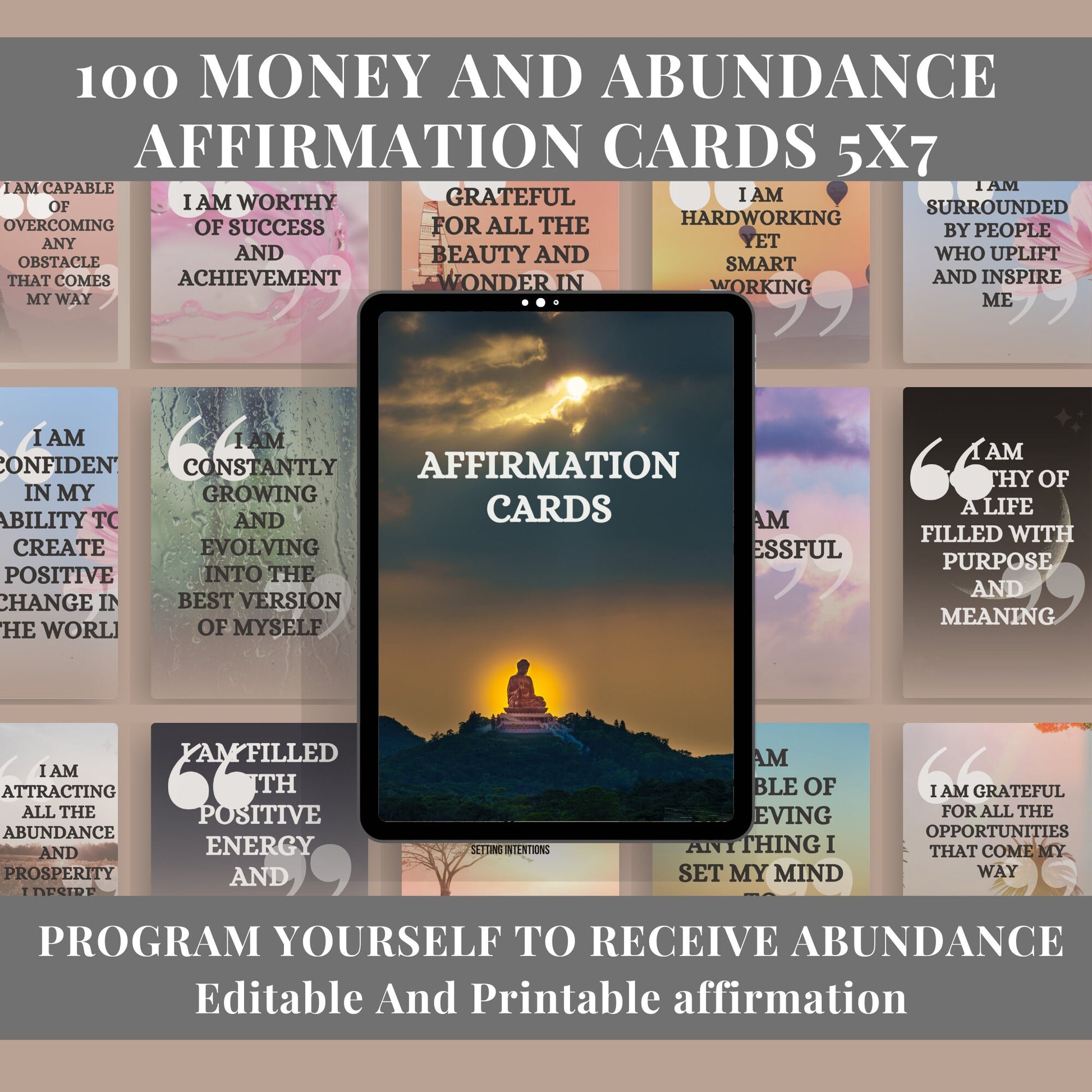 100 printable and editable money and abundance affirmation cards 5x7