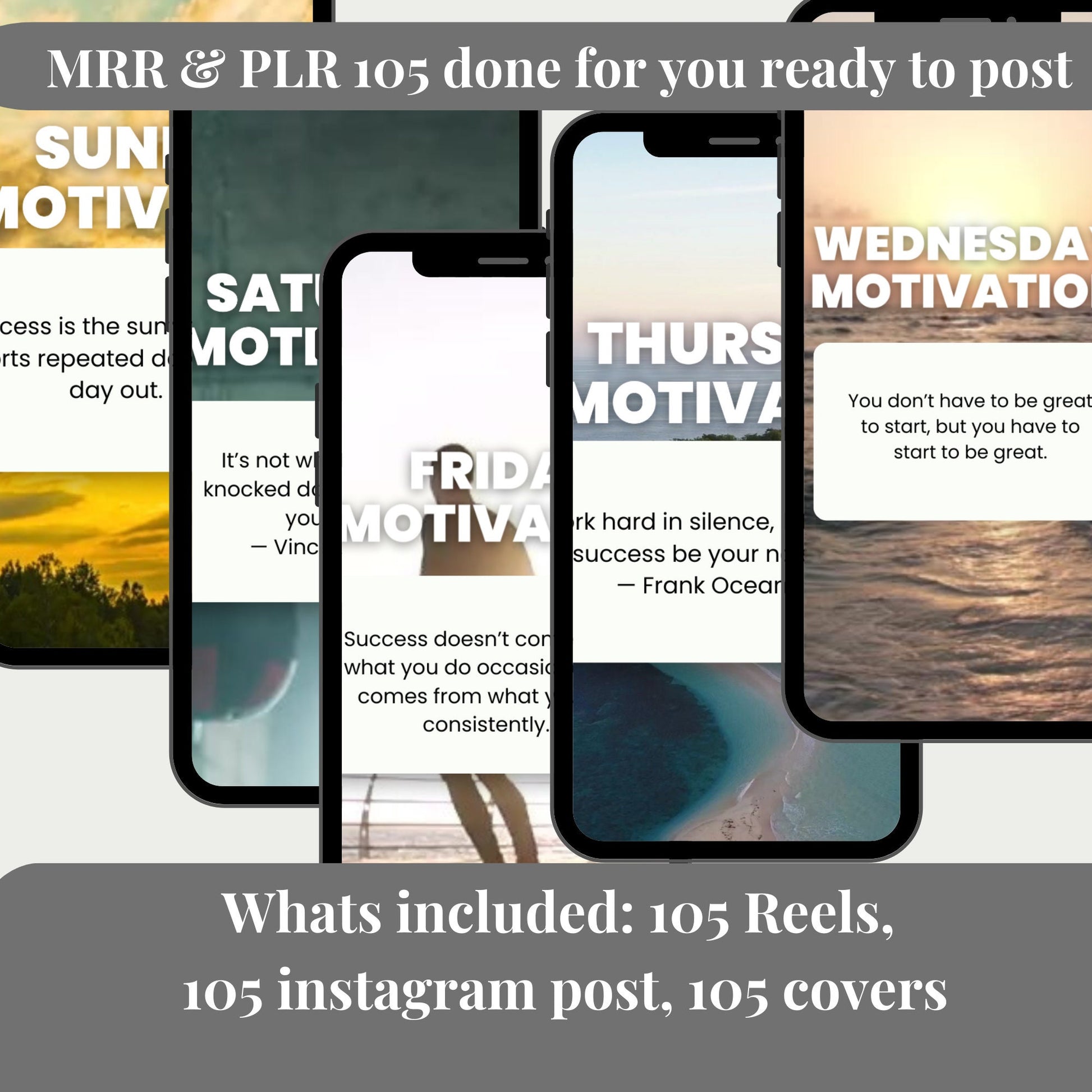 105 Motivational Daily Quotes Faceless Video Reels Bundle Master Resell Rights Done For You Instagram Post, Covers, Bonus: 365 Daily Quote