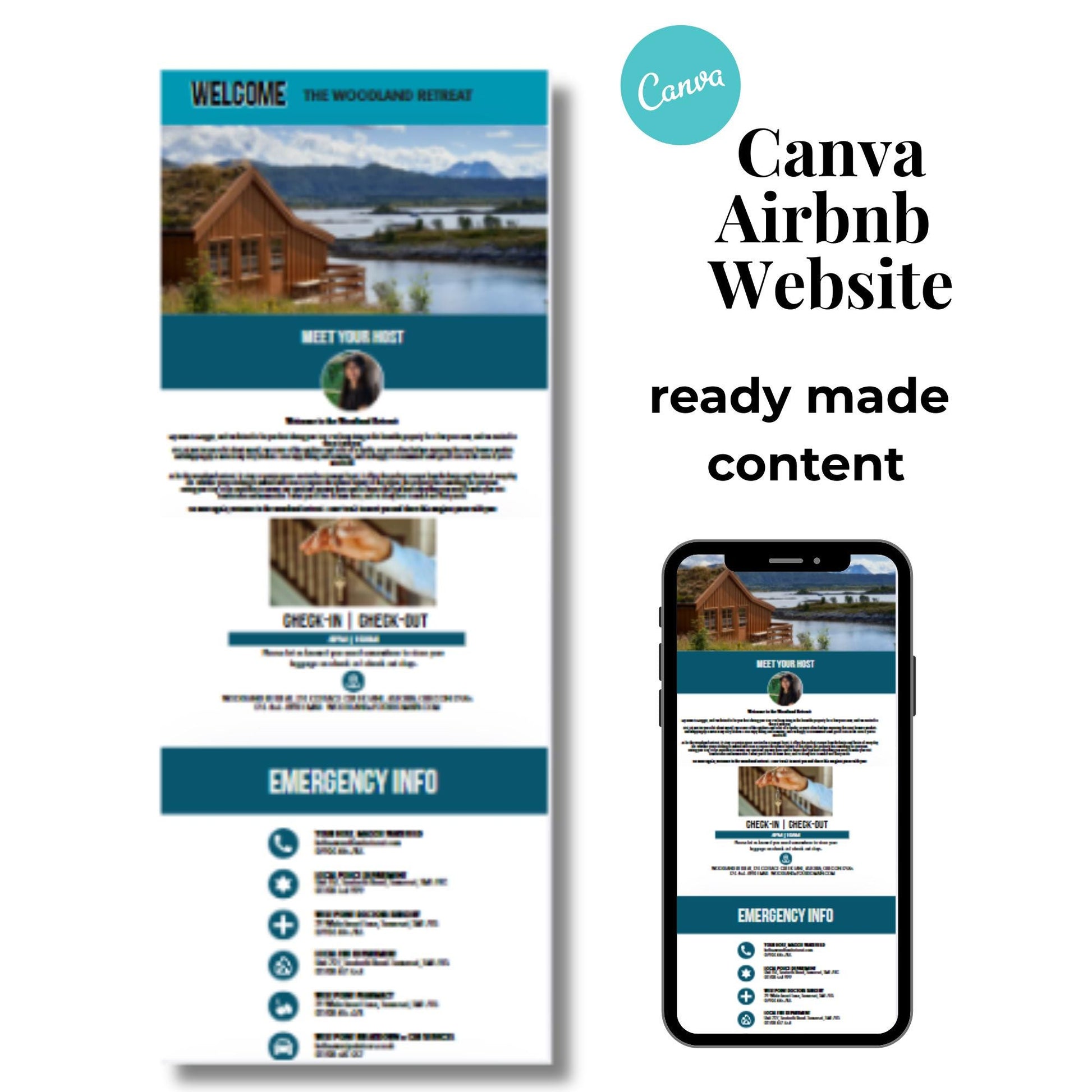 Airbnb Website Template, For host and property managers, includes: things to do, places to eat, house rules, emergency, mobile friendly