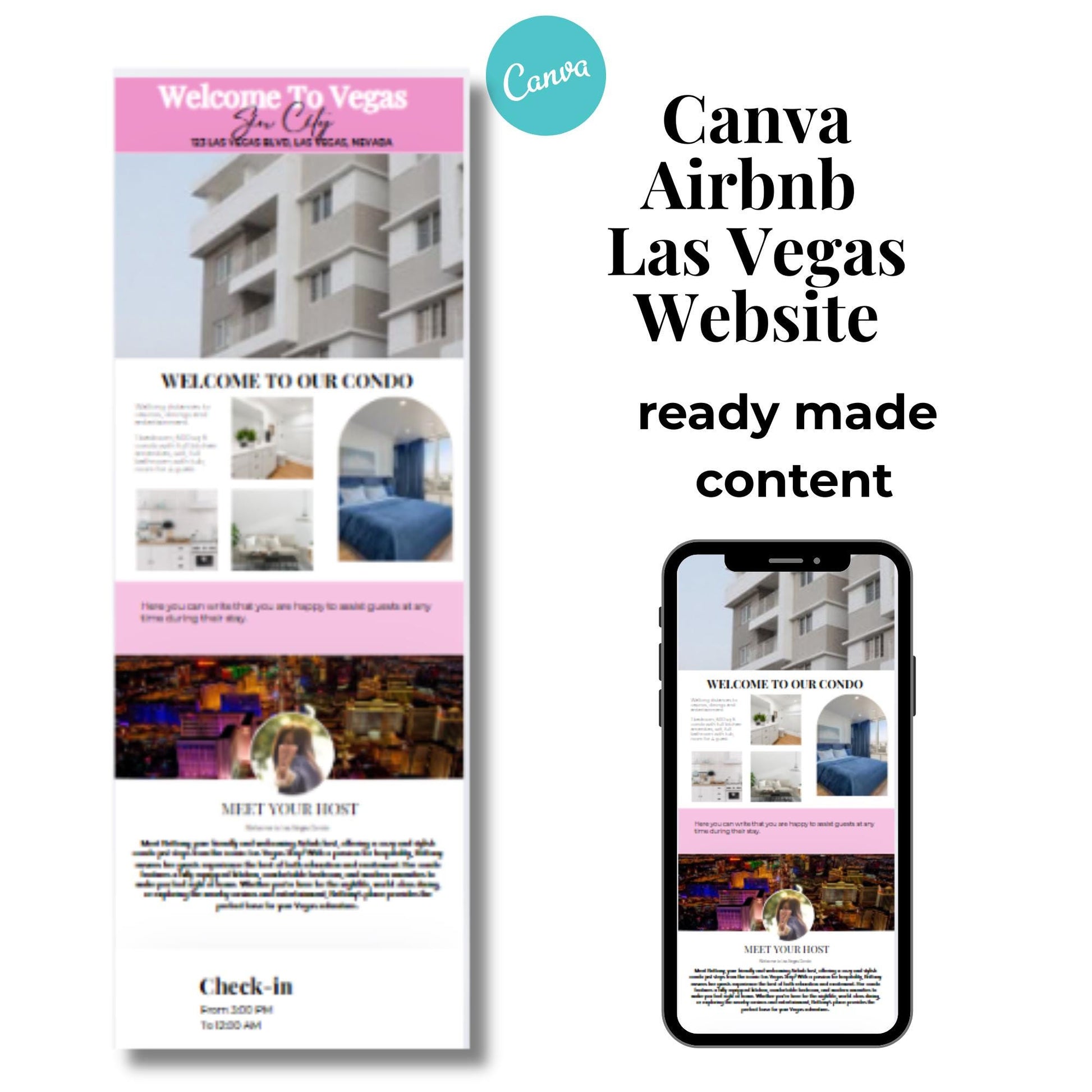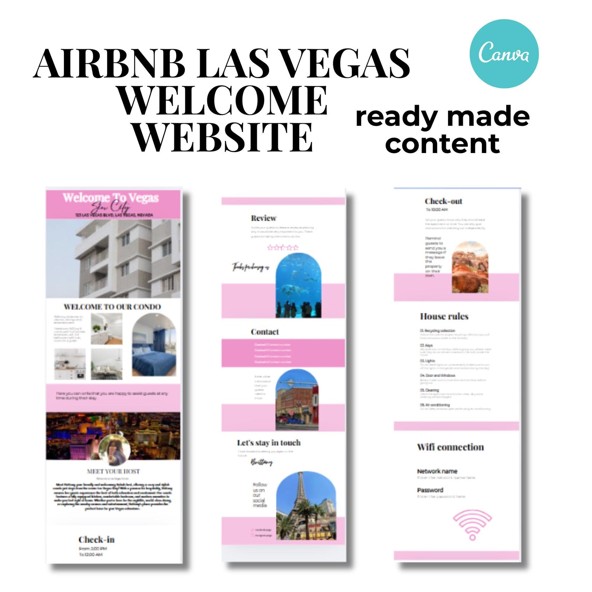 Airbnb Website Welcome To Vegas Template For host, rentals and property managers, includes: things to do, places to eat, house rules, VRBO