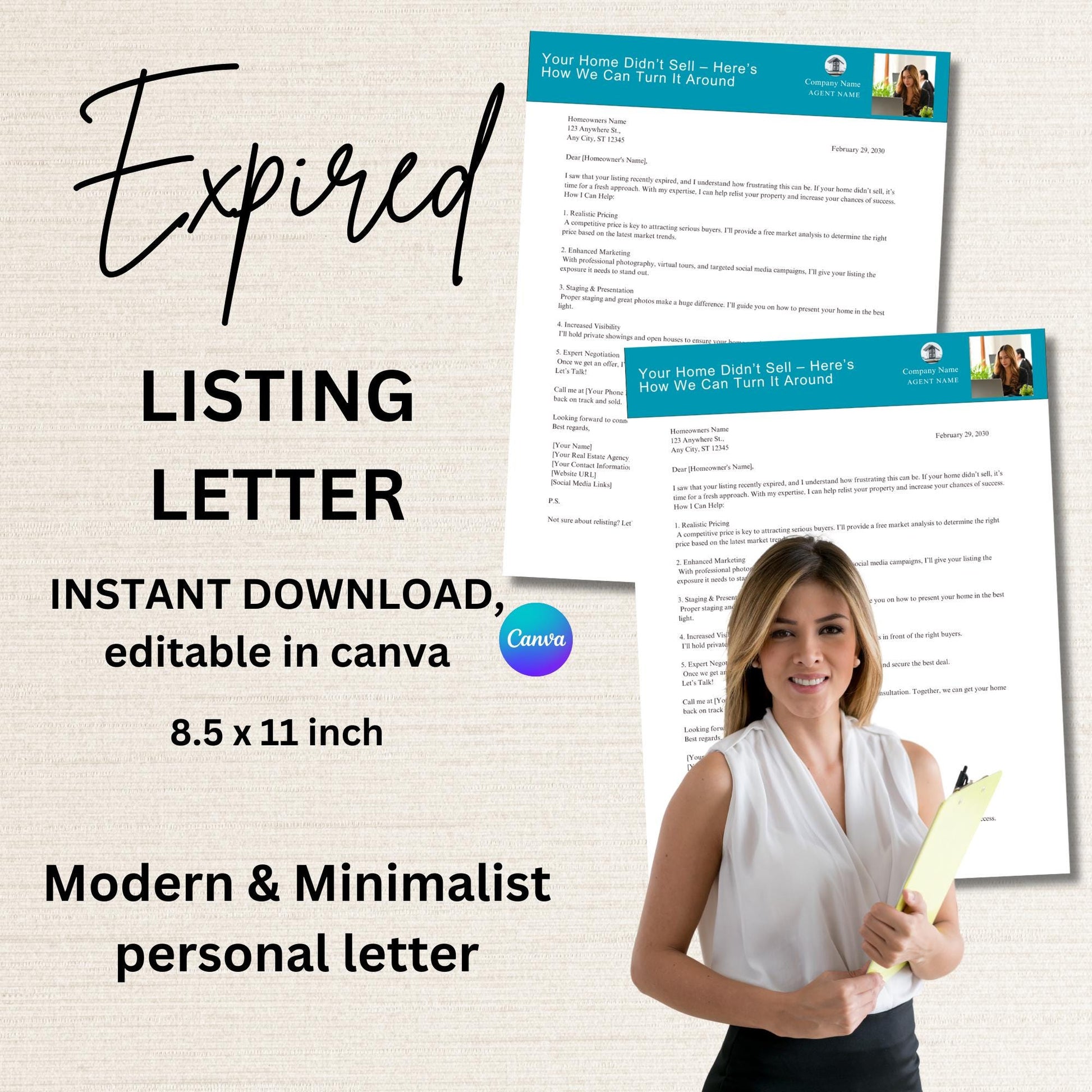 Expired Listing Flyer Template for Real Estate Agents - Customizable & Easy to Use, Minimalist Modern Style, Lead generation, Farming Letter
