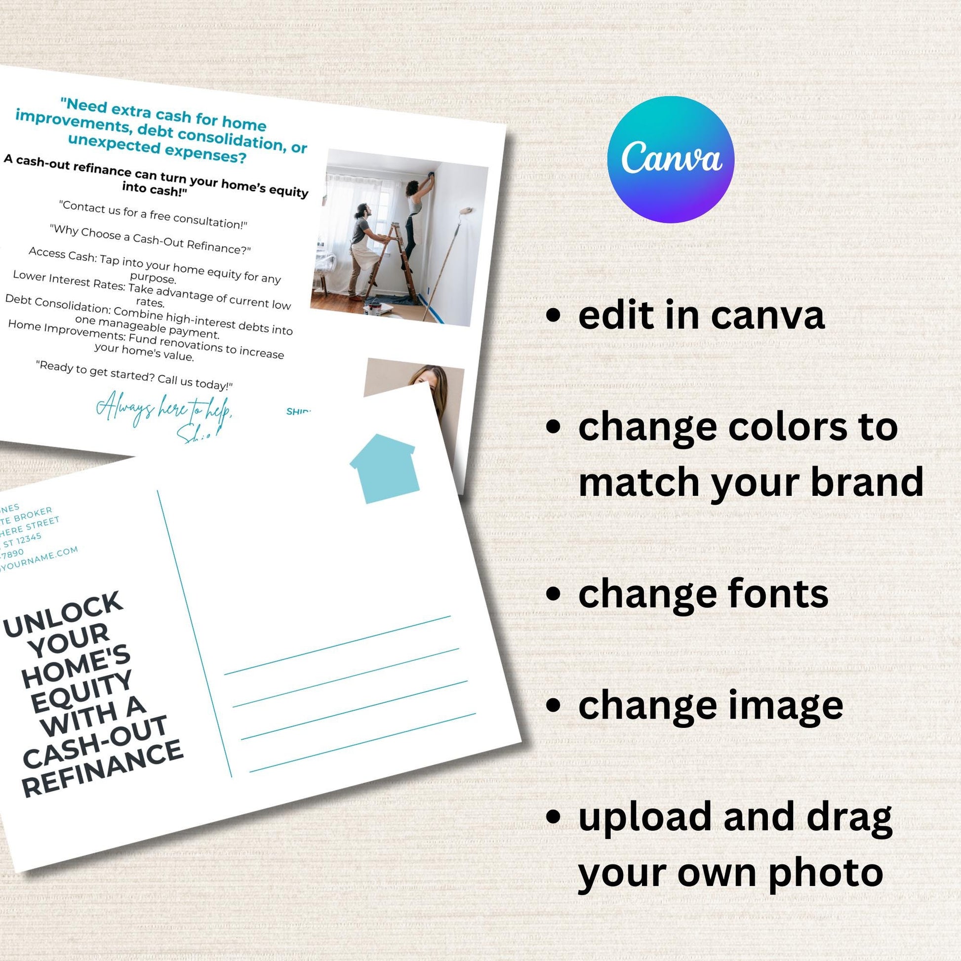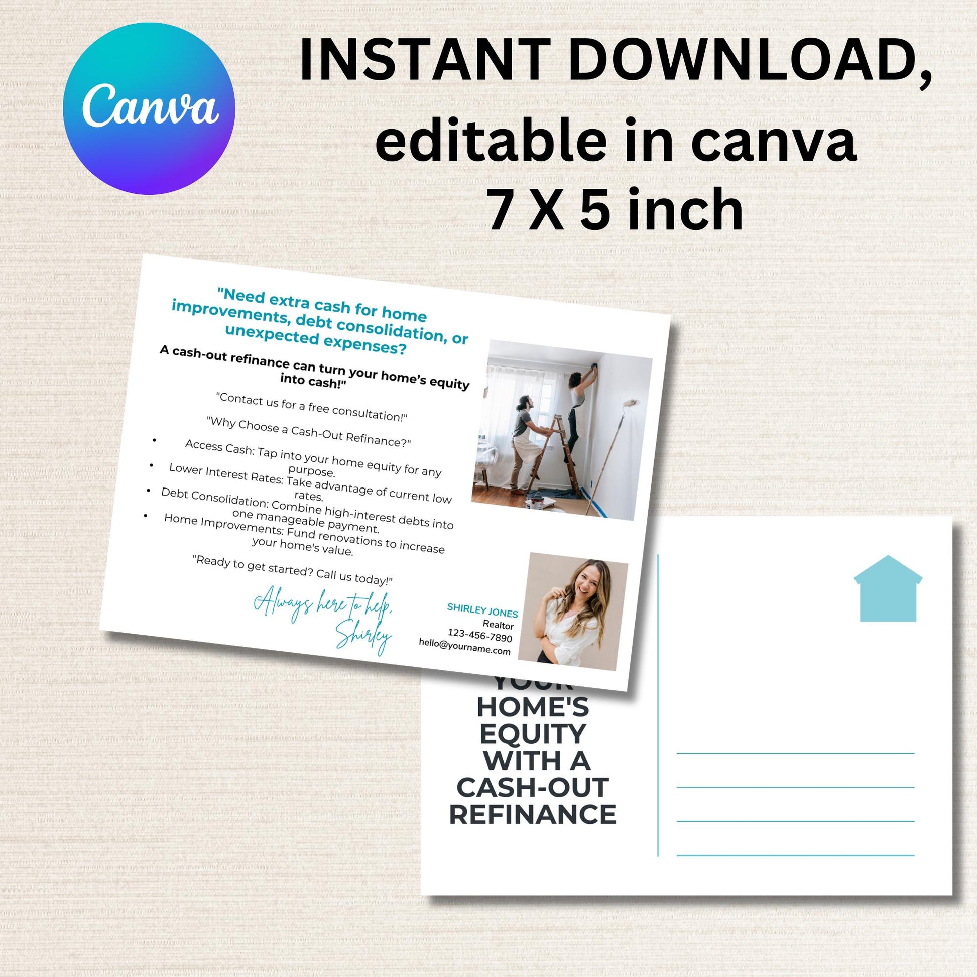 Mortgage Cash Out Refinance Postcard Template 7 x 5 |Loan Agent Refinance Postcard | Instant Download | Modern Professional & Eye-Catching