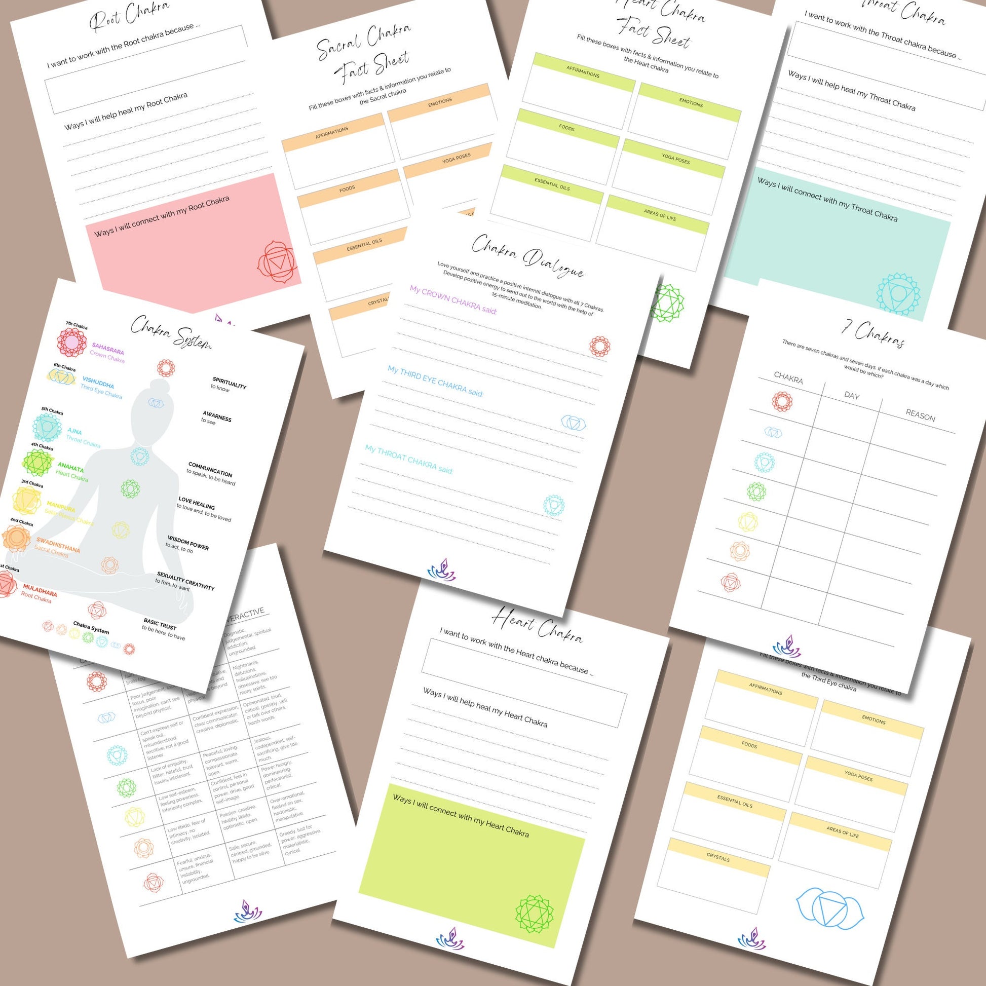 An editable chakra planner that is an essential tool for anyone on a journey of self discover and healing. Bring harmony back into your lives. This planner features worksheets For