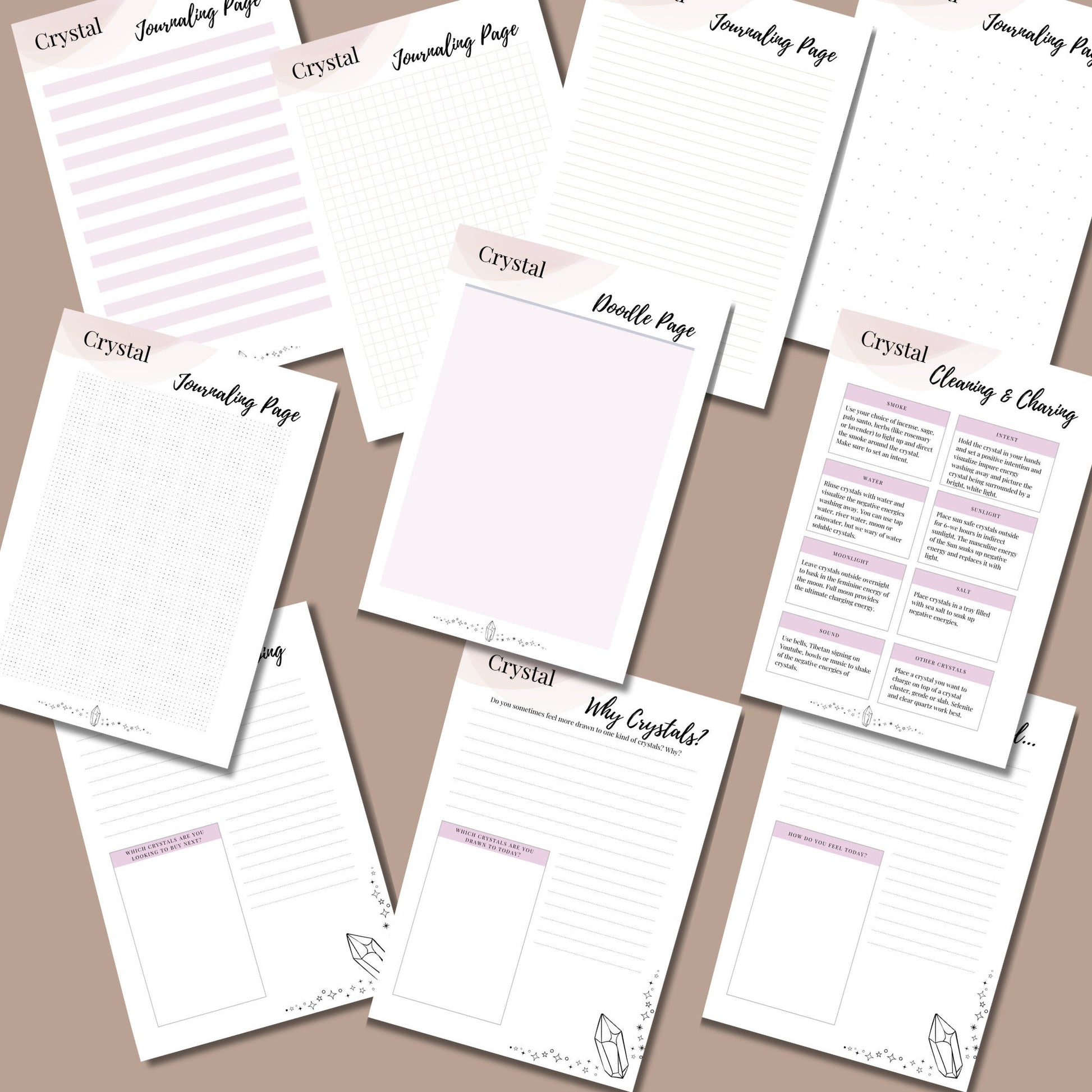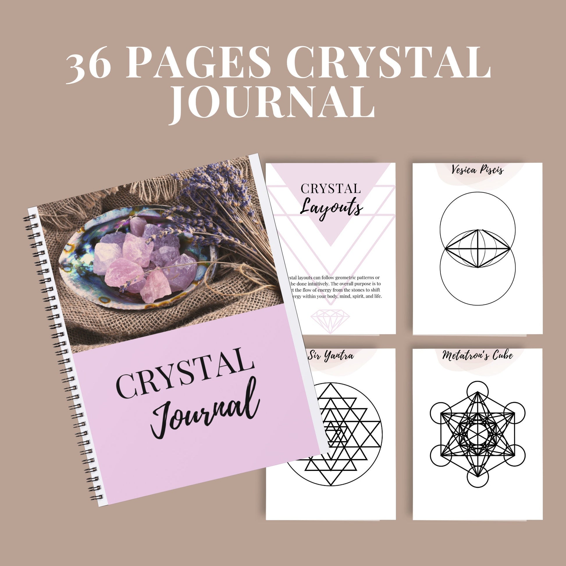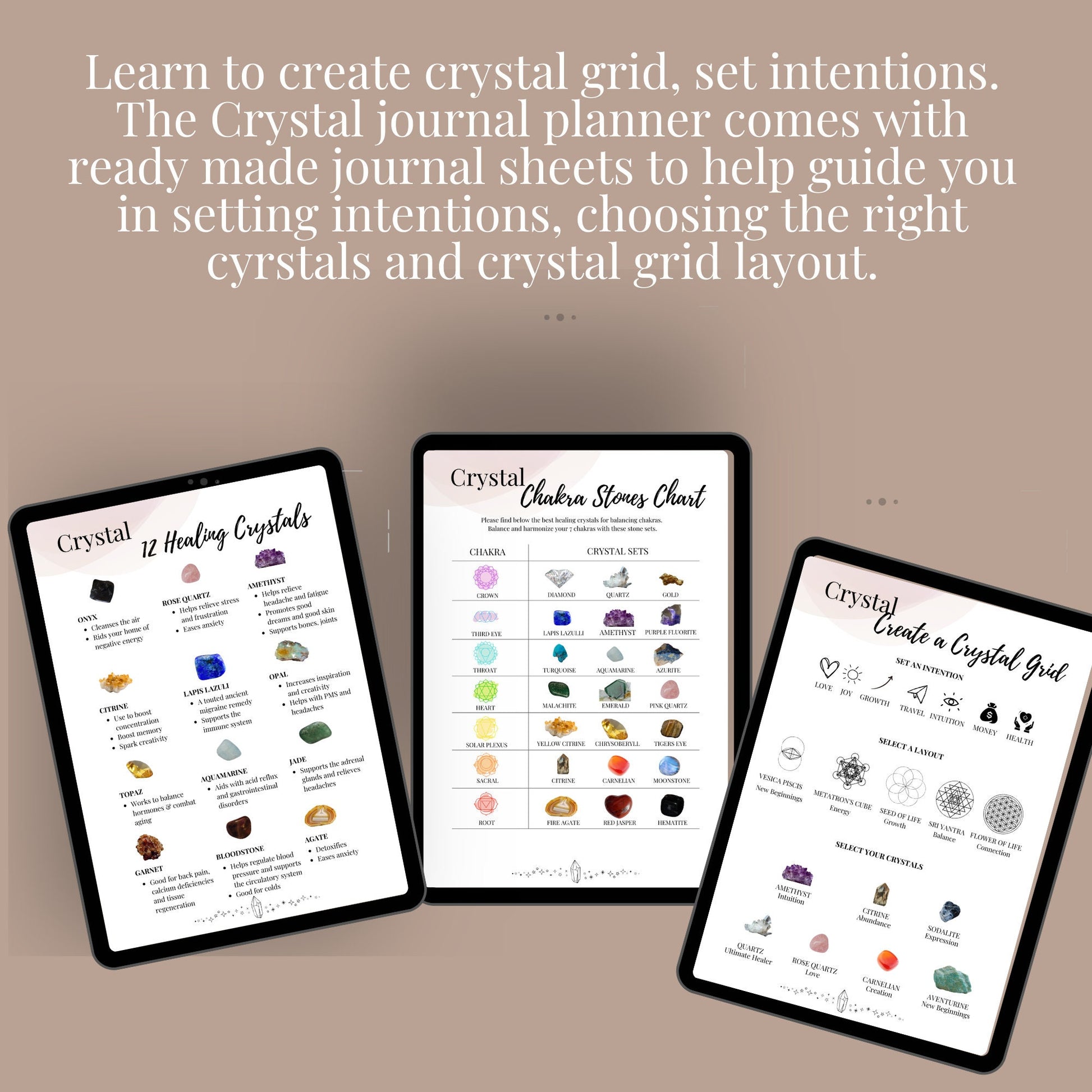 PLR Crystal journal template, learn to create crystal grid, set intentions, printable crystal forms, sheets, editable, done for you journal