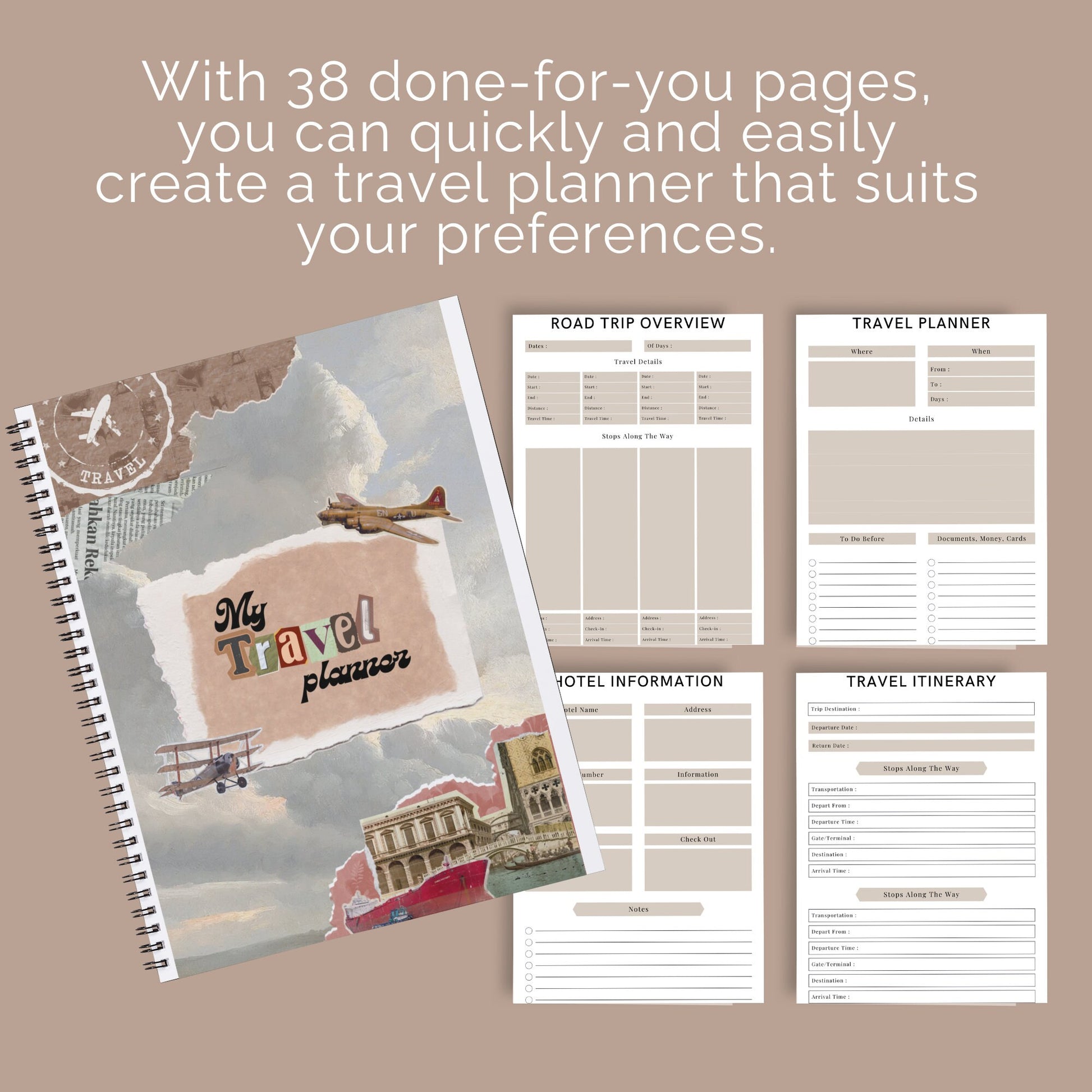 PLR Travel Planner Journal, Organize your travel itinerary, budget and meal expense, easy to customize, done for you templates