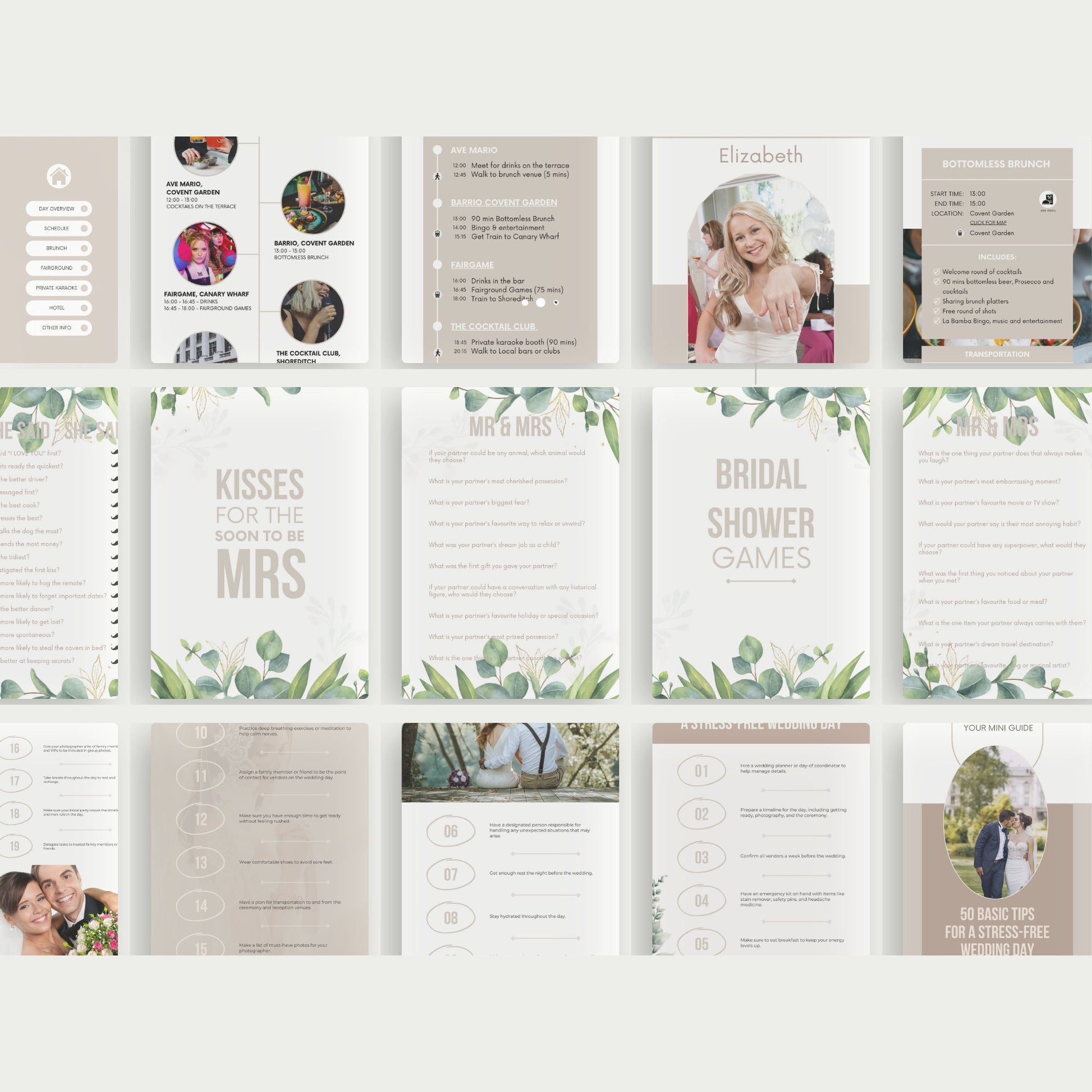 4. Bridal Party Itinerary Template - Mobile (9 Pages)