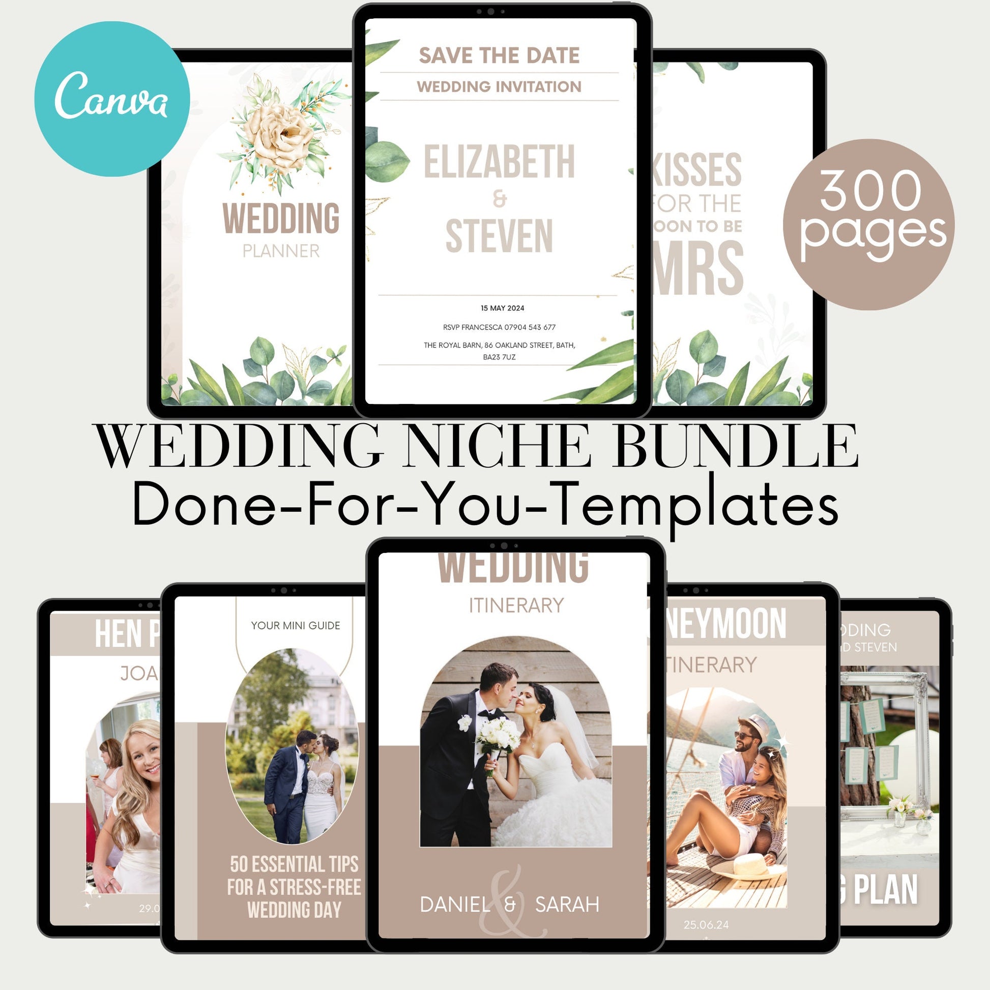 PLR Wedding Niche Bundle, 300 pages done for you template, ready to rebrand and make it yours, editable Canva, digital trendy wedding niche.