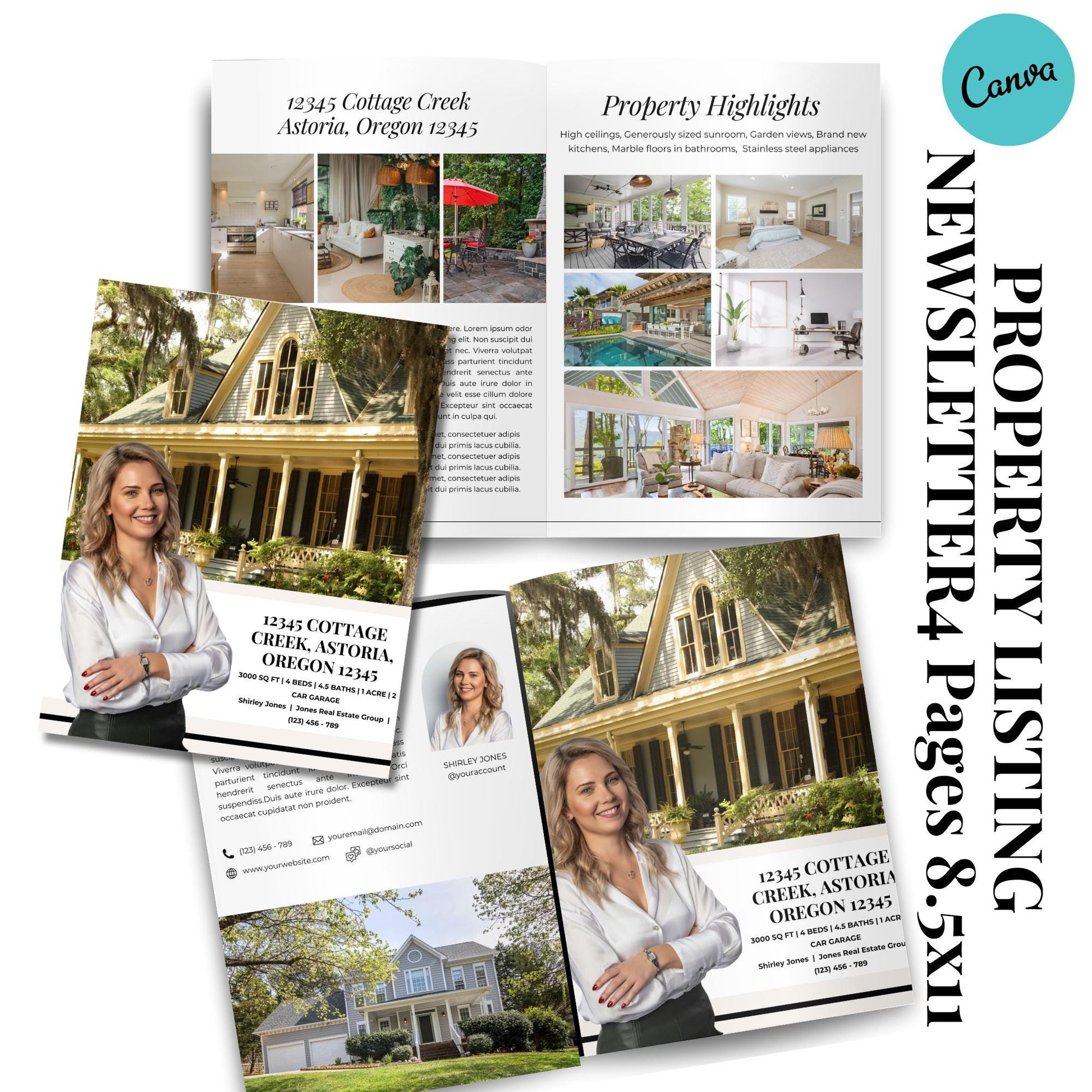 Property Listing Brochure Newsletter Presentation, Real Estate Property Listing Presentation Editable Template, Canva, Open House Brochure