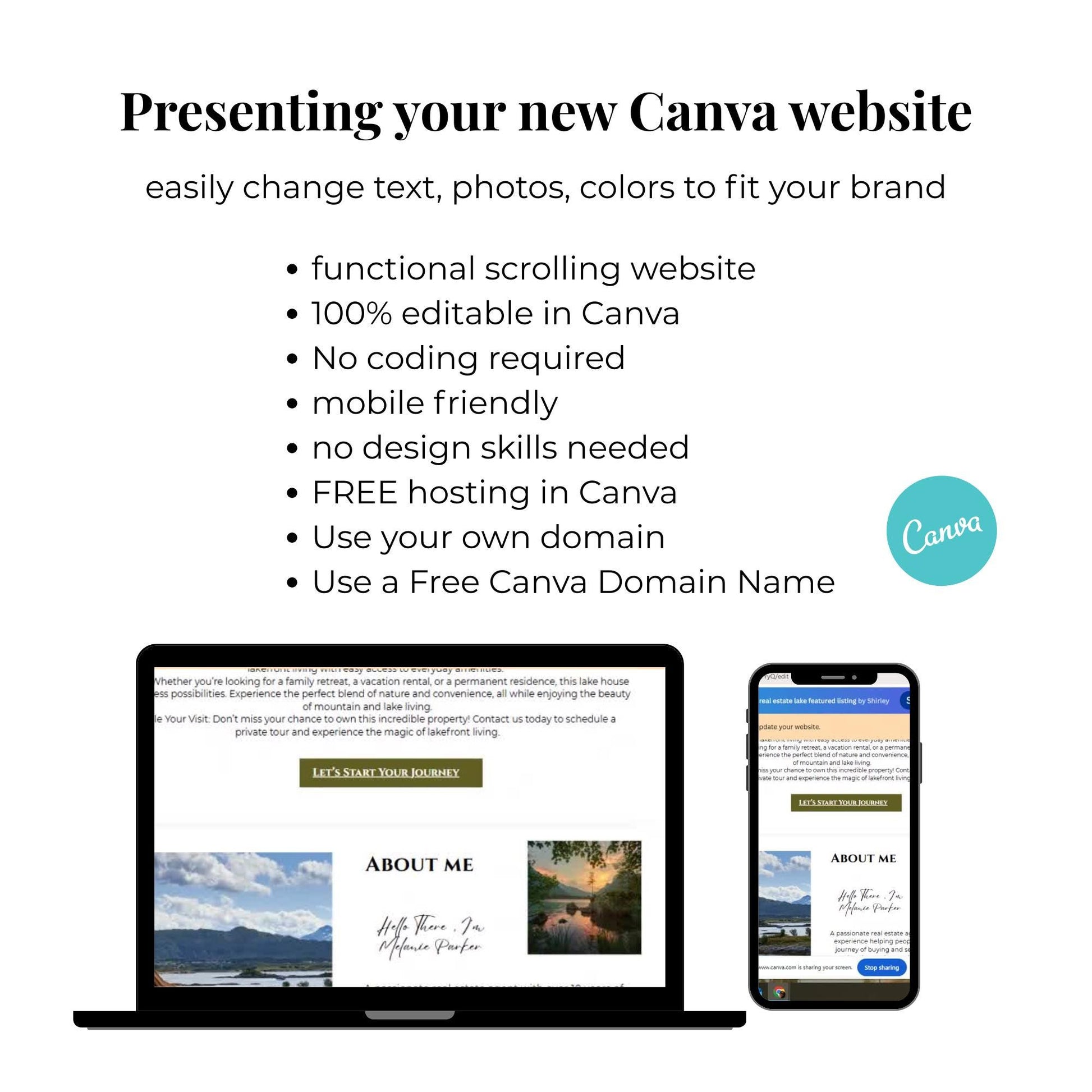 - **FREE Hosting in Canva:** Host your website directly on Canva at no cost.