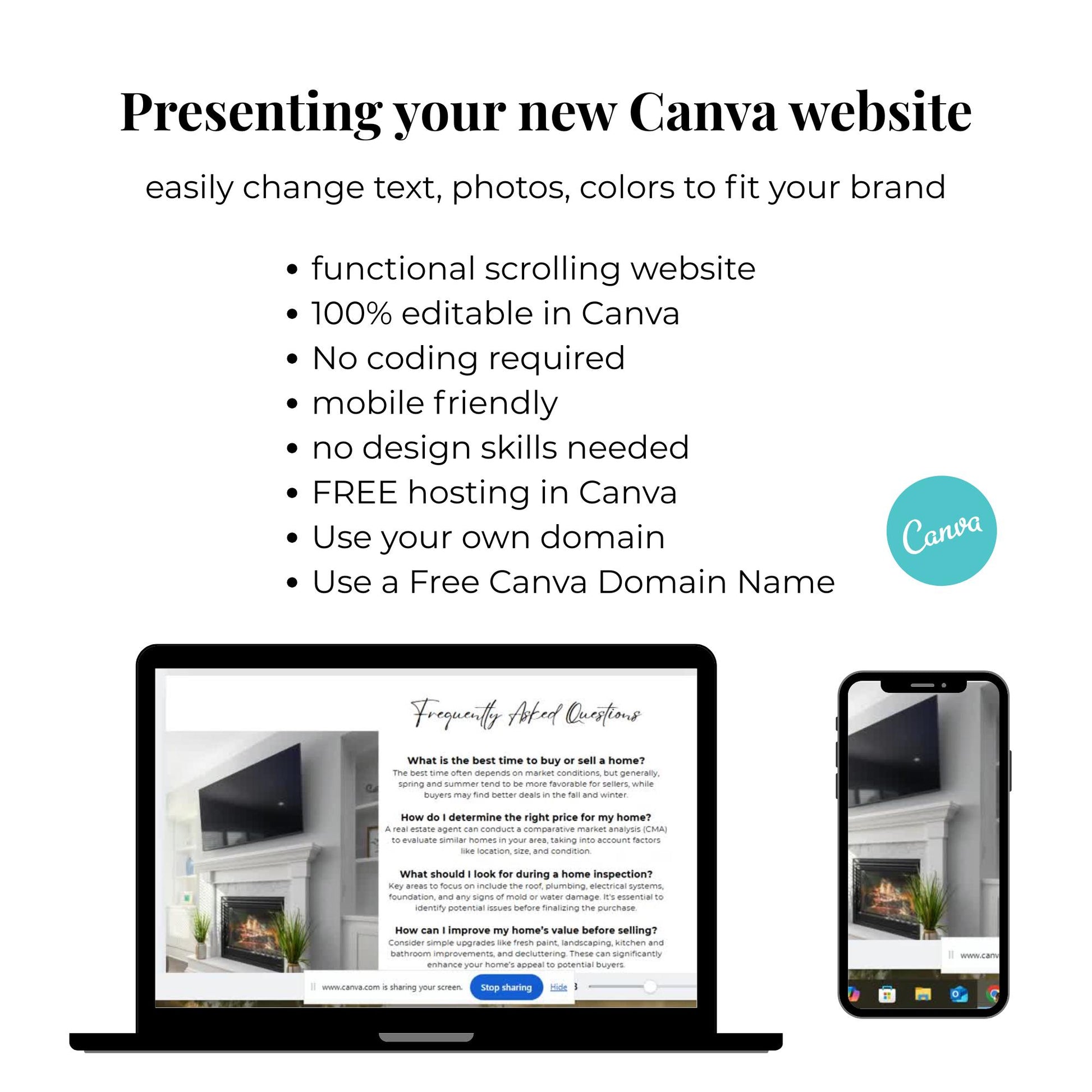 **Tags:** #RealEstateTemplate #CanvaWebsite #EditableWebsite #MobileFriendly #NoCoding #RealEstateAgent #WebDesign #CanvaTemplate