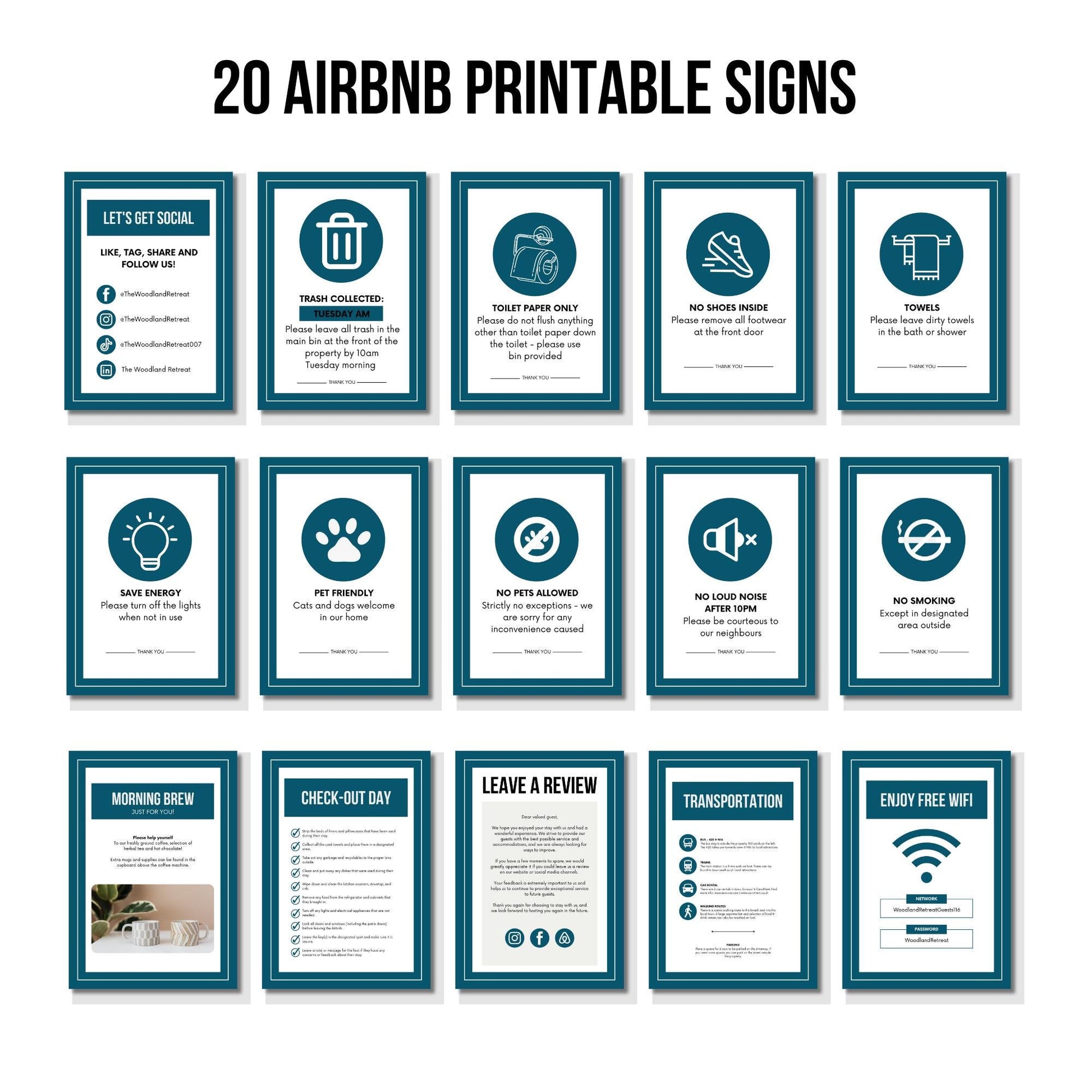 - **20 Printable Signs/21 pages**: Customize and print signs to enhance your Airbnb property. These are designed to help guests navigate your space with ease, create a welcoming environment, and ensure key information is always at their fingertips.